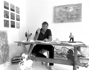 Kai Matussik is an explorer of the vast depths of our here & now. A satirist with pen and brush. Like an octopus, he grasps and grasps thematically with a variety of tools and painting media. What unites his diverse works, however, is the artist's refreshing humor, his sensitive sense of the abysmal, and his open-hearted boldness in daring to explore motifs. In doing so, the painter, much like an octopus, penetrates the deeper layers of our contradictory existence and conceals far more than the superficial wit that many of his works offer. One can be seduced by his playful approach to the material, his constantly surprising references and ideas, and yet there is a poetic melancholy inherent in his works, which is always a hallmark of true art.
